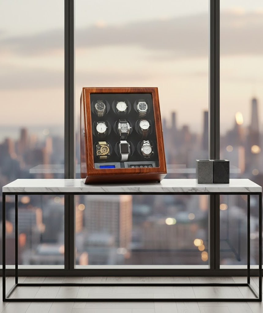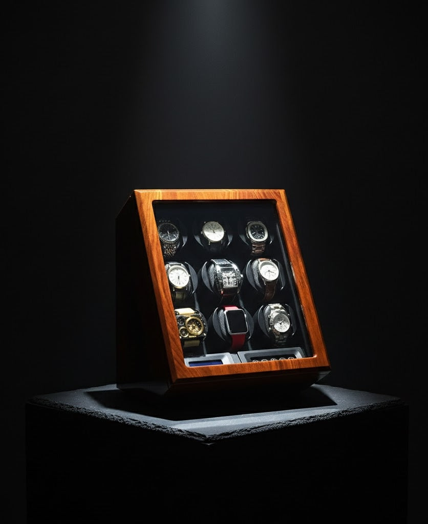 • Elite 9-Rotor Management: Features nine independent, professional-grade motors, each customizable to provide the exact winding specifications required for a diverse collection of luxury movements.