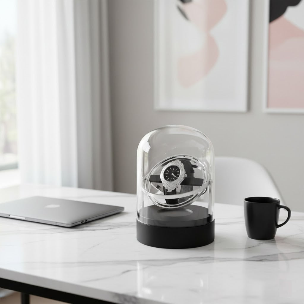 The Orbital Series transforms the necessity of watch winding into a captivating visual experience. From the signature spherical silhouette of the Orbiter Solo to the multi-axis gravitational motion of the Gyroscope Orbit, these units are engineered to mimic the natural movement of the human wrist. Encased in museum-quality domes and finished in precious metal tones, the Orbital Series is a sanctuary where modern geometry meets precision horology.
