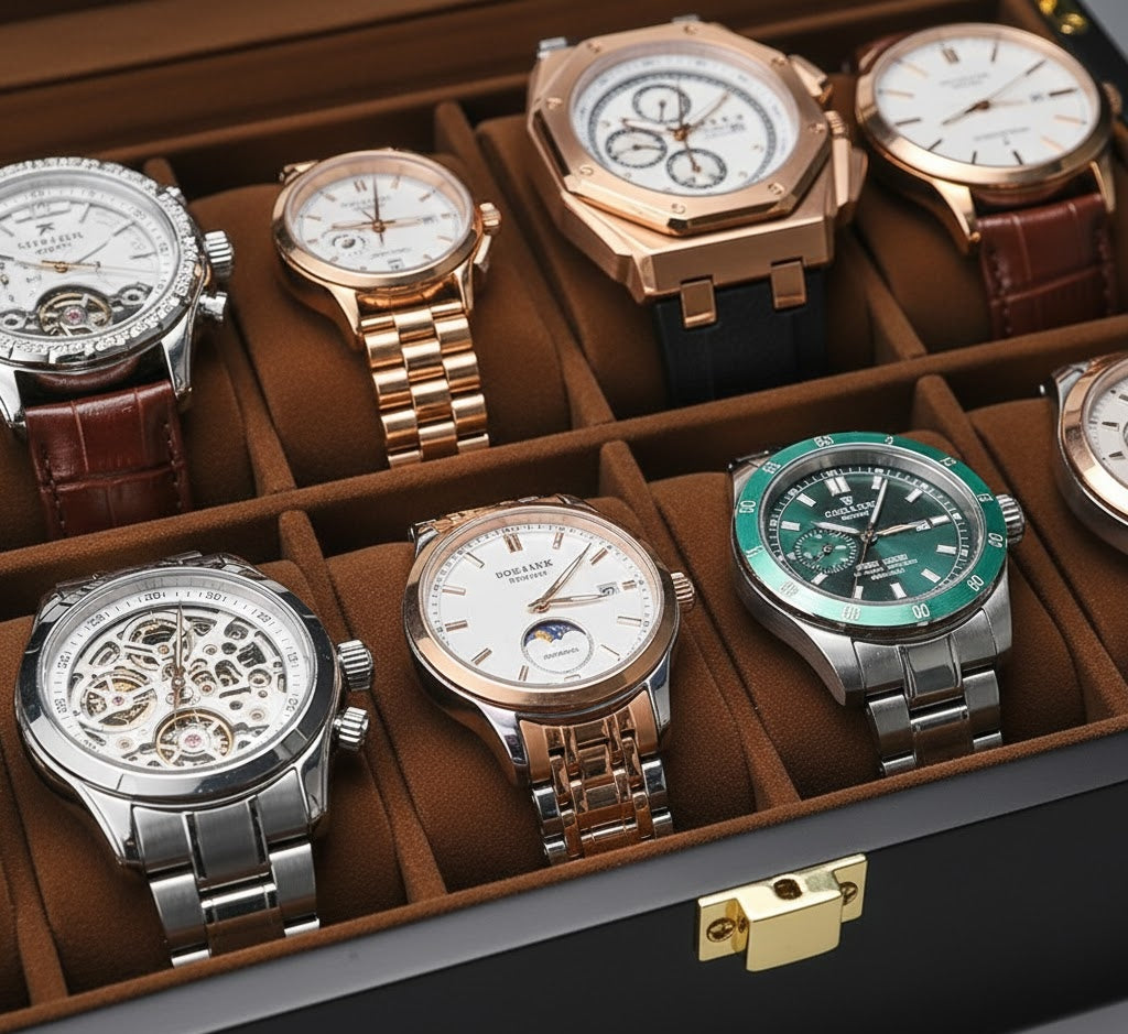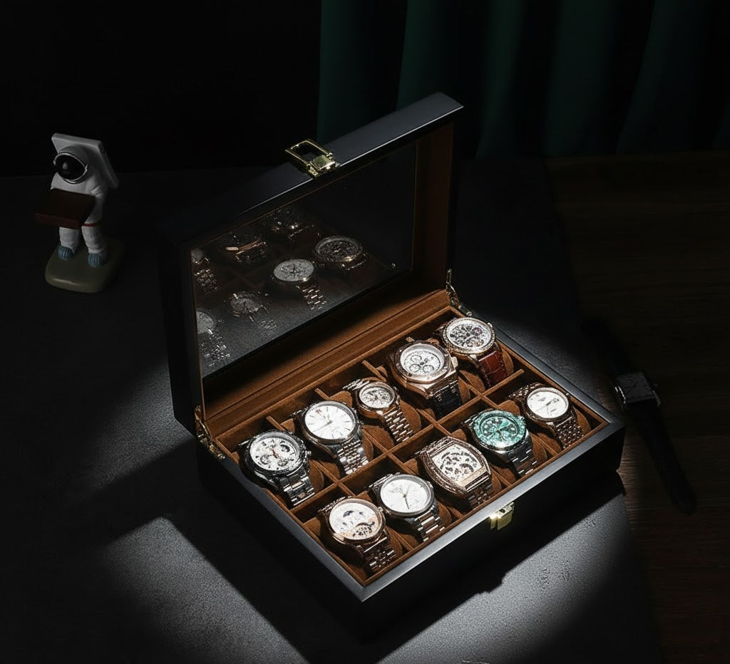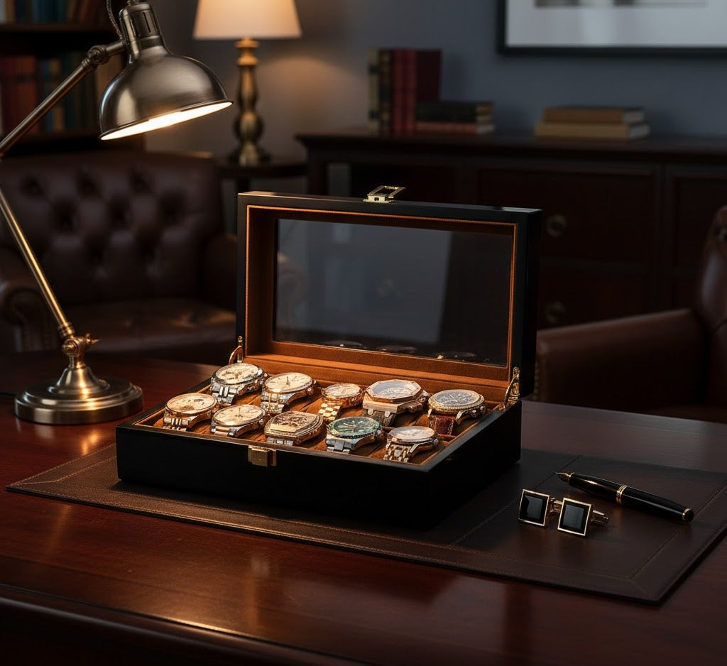 Sophisticated Organization. Timeless Craftsmanship. The Aurelix Gallery Series is designed for the collector who views their timepieces as an curated exhibit. Crafted with a premium Solid Wood Texture and paired with a rich, protective Flannel interior, these cases create an instant sense of hierarchy and prestige for your entire collection.