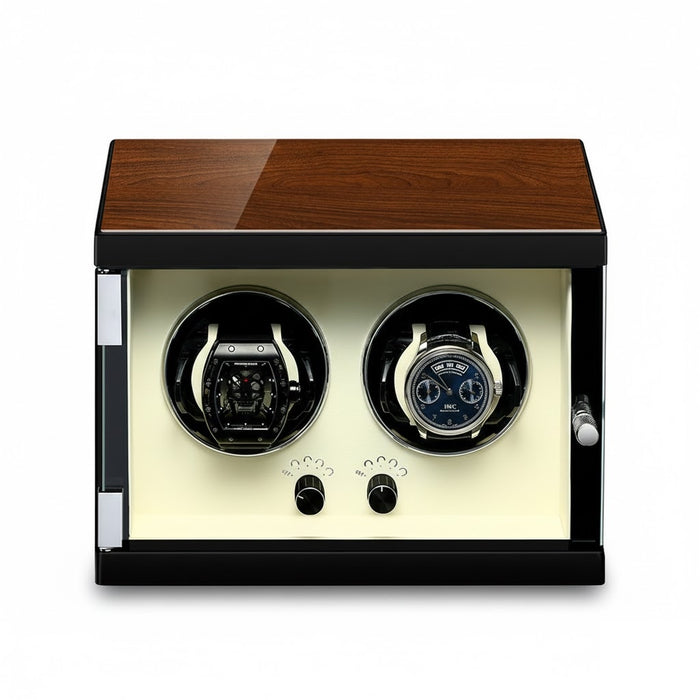 Aurelix Modello Duo | Double Automatic Watch Winder | Natural Walnut & Cream Velvet | Precision Dual-Control Display