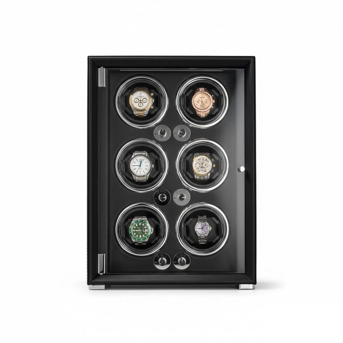 Aurelix Senna Six | 6-Slot Automatic Watch Winder Gallery | Anthracite Gunmetal Artisan Wrap | Mabuchi Silent Motor