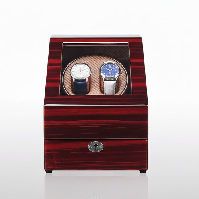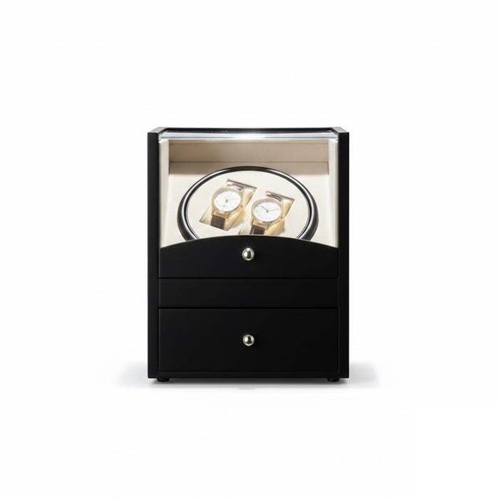 Aurelix Modello Duo | Double Automatic Watch Winder | Obsidian Black & Midnight Velvet | Precision Dual-Control Display
