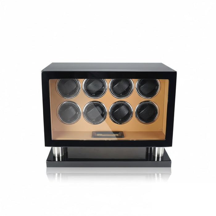 Aurelix Grand Gallery | 8-Slot Automatic Watch Winder | Obsidian Piano Lacquer & Sandstone Microfiber | Japanese Mabuchi Motor