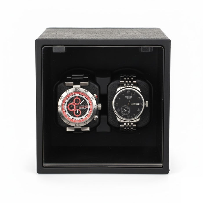 Aurelix Modulo Duo | High-Density Watch Winder | Crocodile Embossed Artisan Wrap | Multi-Watch Rotor