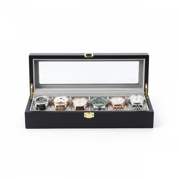 Aurelix Gallery 6 | Wooden Watch Display Case | Obsidian Black & Slate Gray Flannel