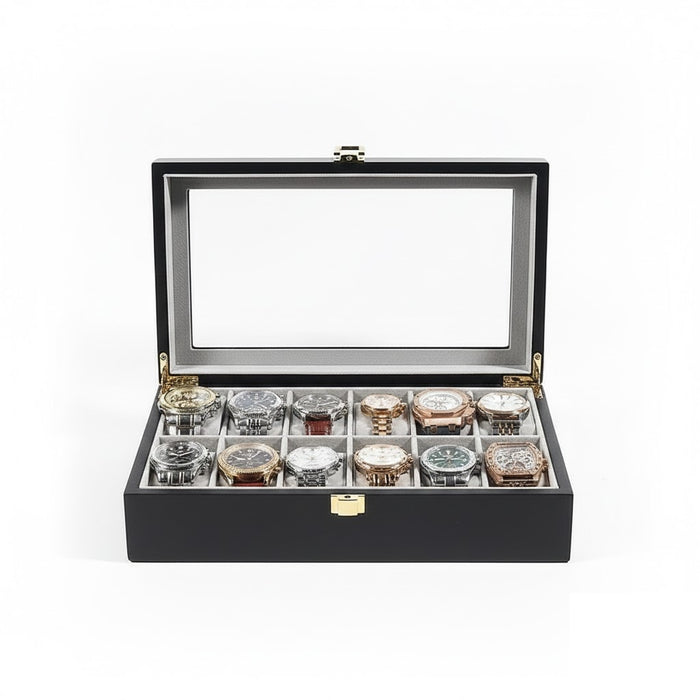 Aurelix Gallery 12 | Wooden Watch Display Case | Obsidian Black & Slate Gray Flannel