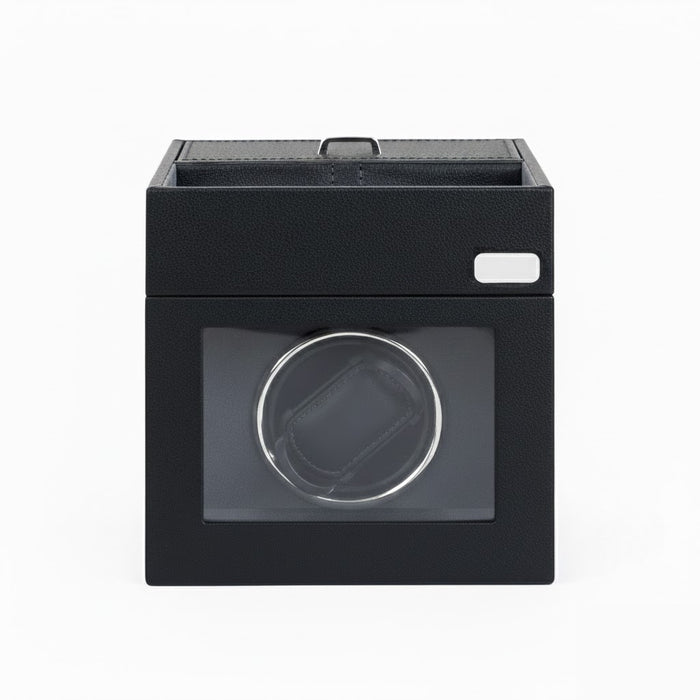 Aurelix Solo | Single Automatic Watch Winder Box | Obsidian Artisan Wrap | Anthracite Grey Interior & Metal Label