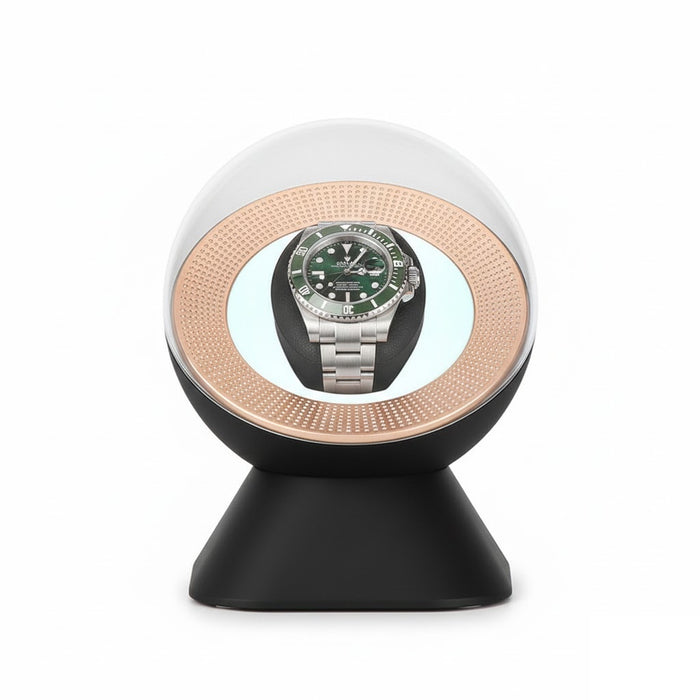 Aurelix Orbiter Solo | Single Automatic Watch Winder | Midnight Obsidian & Rose Gold | Global USB-C Dual-Power