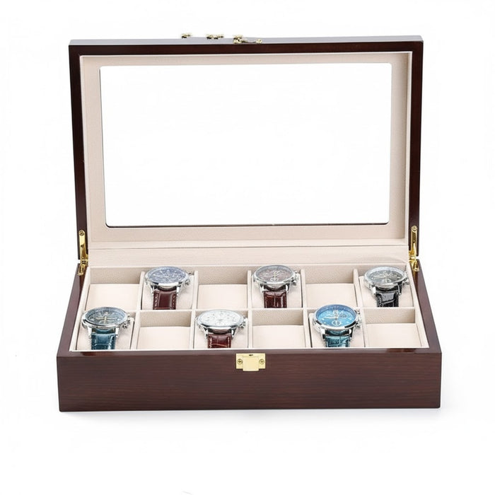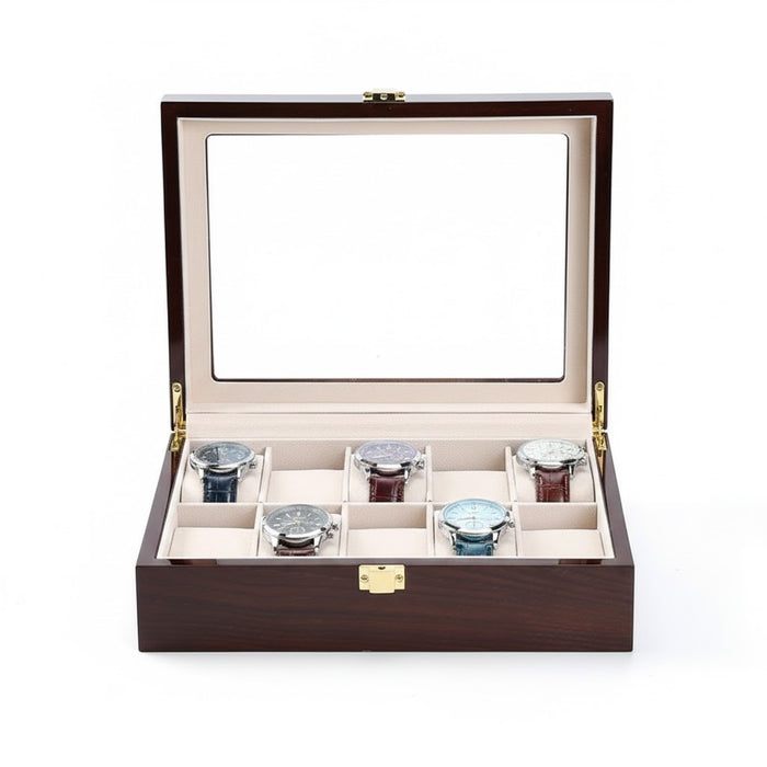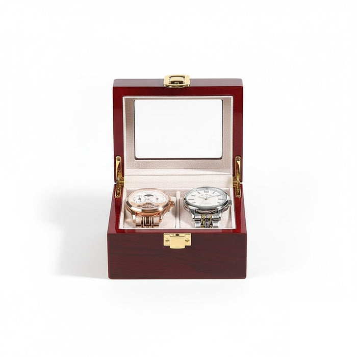 Aurelix Gallery 2 | Wooden Watch Display Case | Polished Mahogany & Cream Flannel
