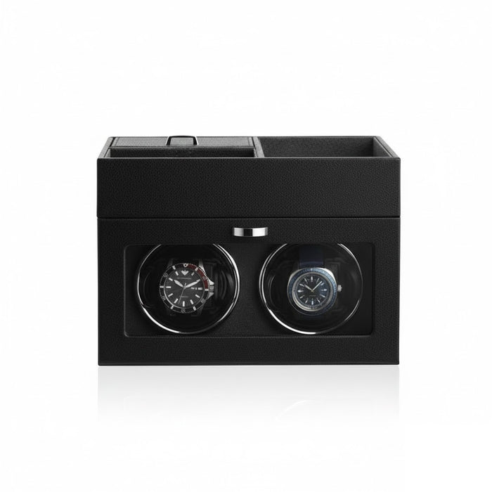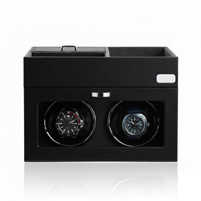 Aurelix Duo | Double Automatic Watch Winder Display | Obsidian Artisan Wrap | Anthracite Grey Interior & Metal Label