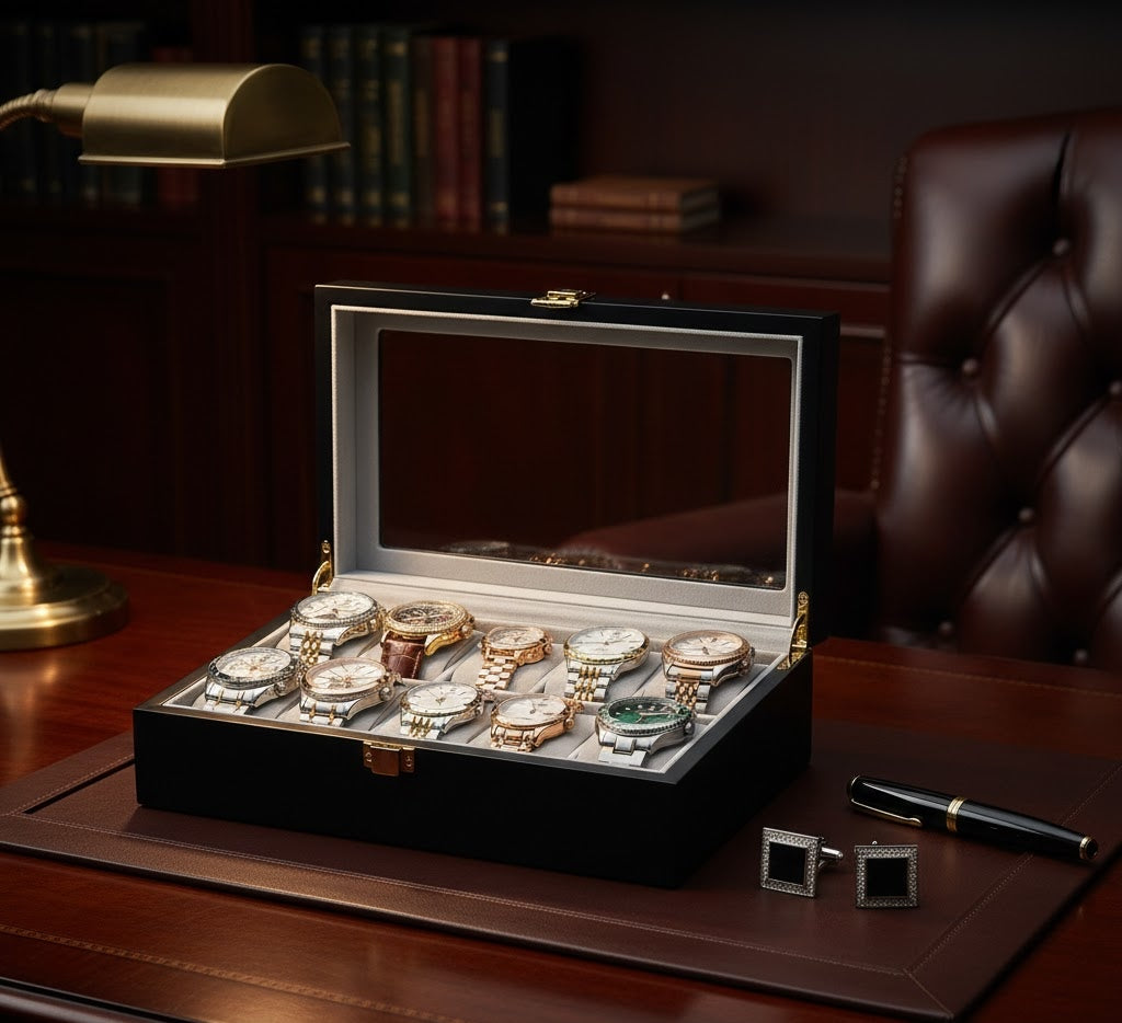 Sophisticated Organization. Timeless Craftsmanship. The Aurelix Gallery Series is designed for the collector who views their timepieces as an curated exhibit. Crafted with a premium Solid Wood Texture and paired with a rich, protective Flannel interior, these cases create an instant sense of hierarchy and prestige for your entire collection.