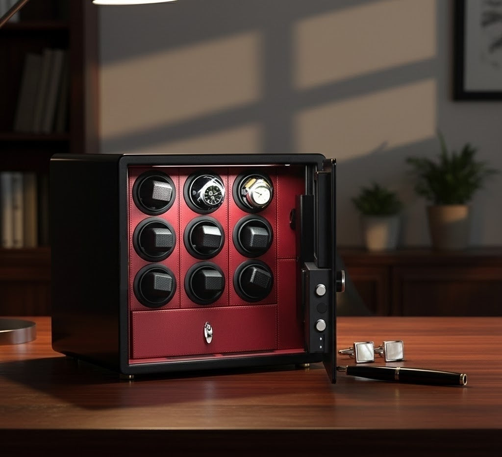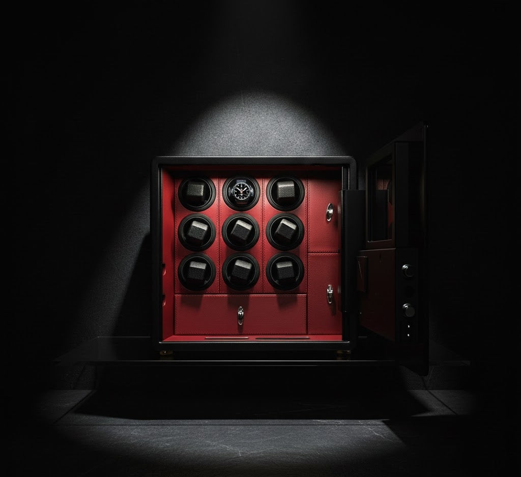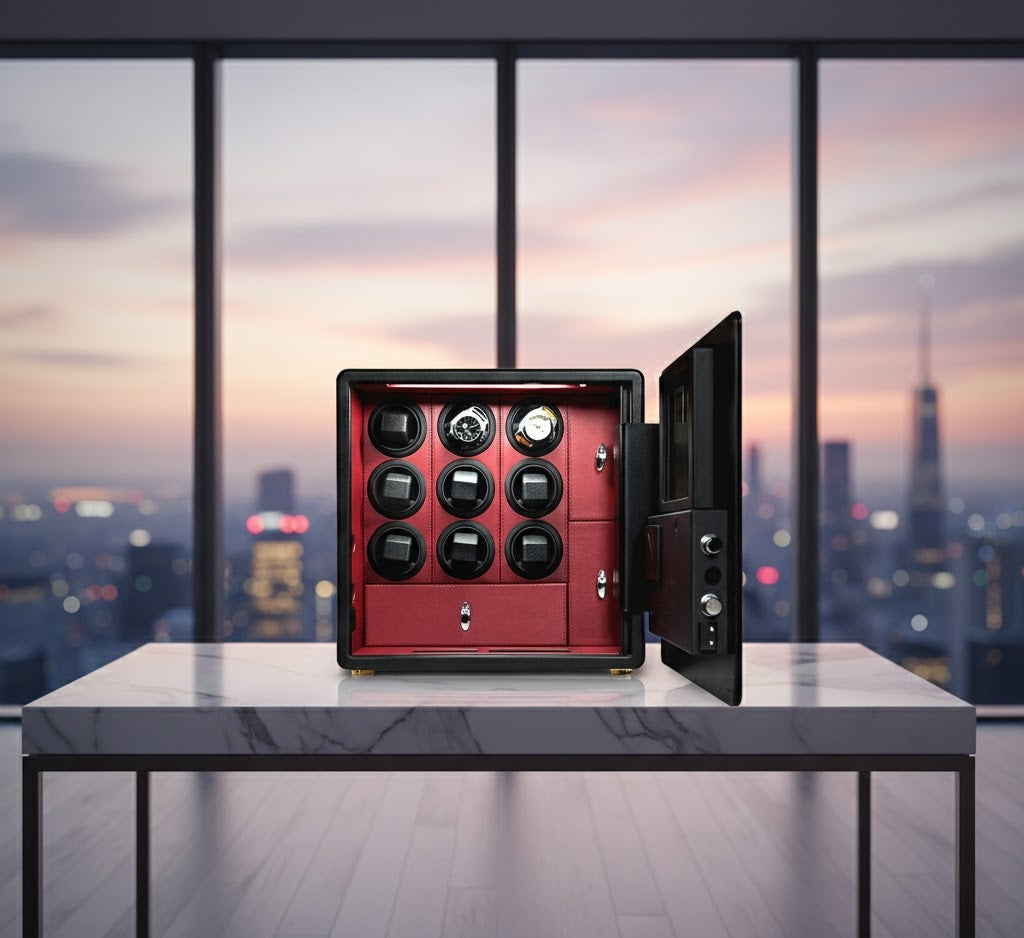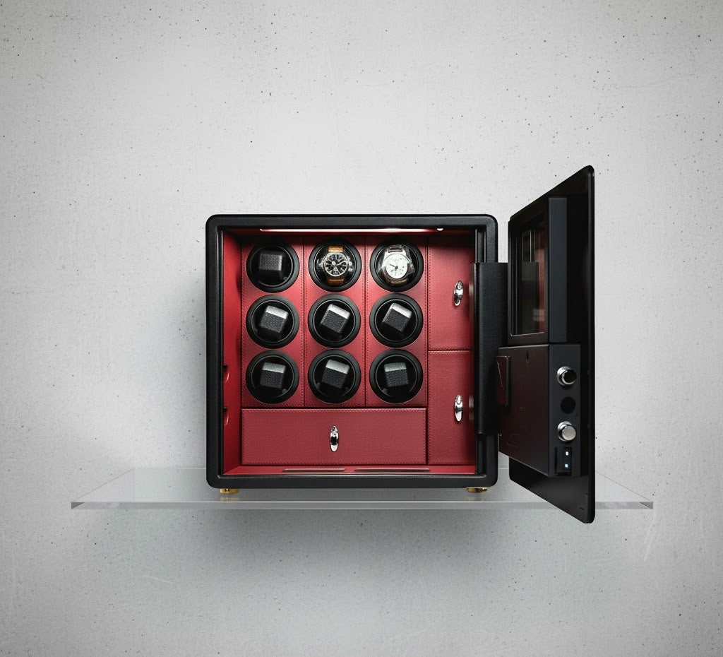 The Ultimate Sanctuary for Your Horological Investment The Aurelix Guardian Series is engineered for the collector who demands uncompromising security without sacrificing elegance. Weighing a formidable 30kg, this high-security vault provides a fortified environment for up to nine automatic timepieces, shielding them from theft, environmental wear, and unauthorized access.