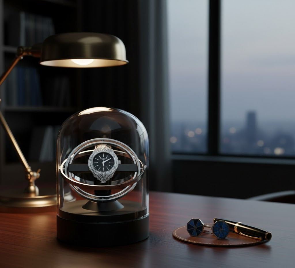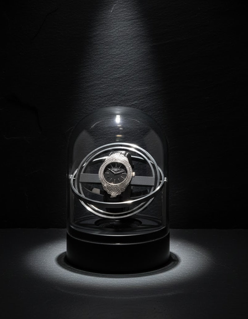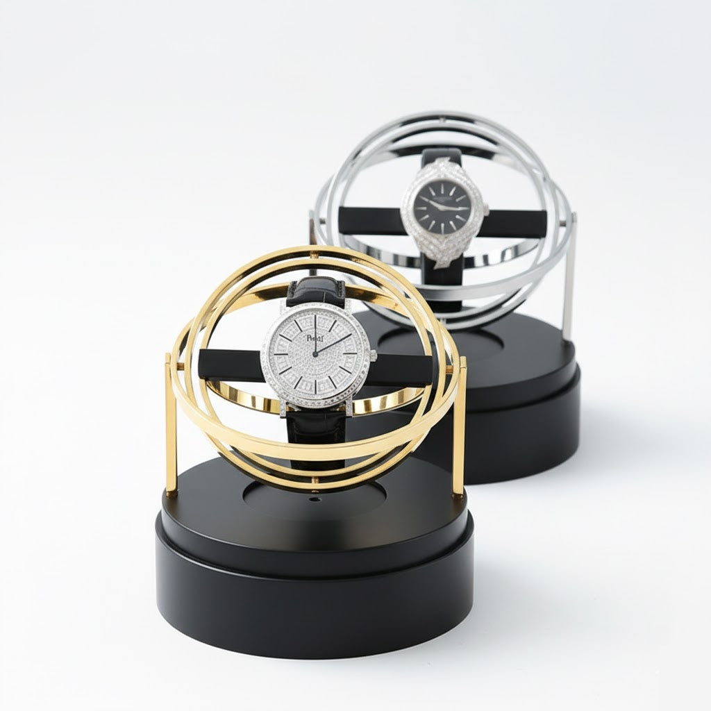 Experience the Beauty of Perpetual Motion The Aurelix Gyroscope Orbit is an artistic masterpiece designed for the most sophisticated automatic timepieces. By utilizing a specialized triple-ring orbital system, this winder provides continuous, multi-directional motion that mimics the natural movement of the human wrist. Encased in a museum-quality glass dome, it transforms your watch into a captivating kinetic sculpture while ensuring its mechanical heartbeat never falters.
