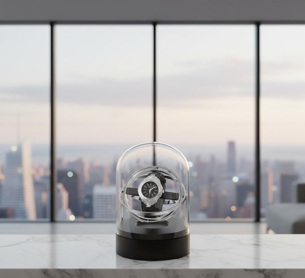 • High-Transparency Display Dome: Protected by a premium, dust-proof acrylic glass dome that offers a 360-degree panoramic view of your watch’s motion.