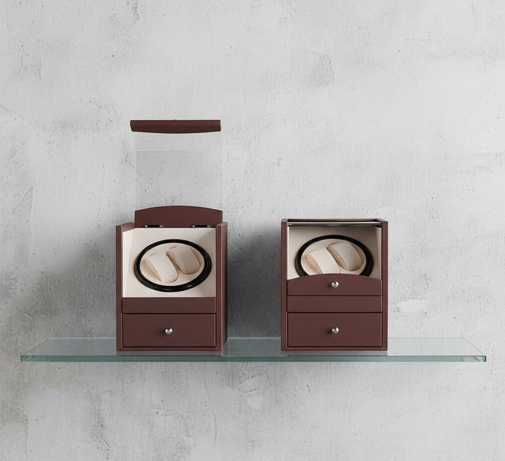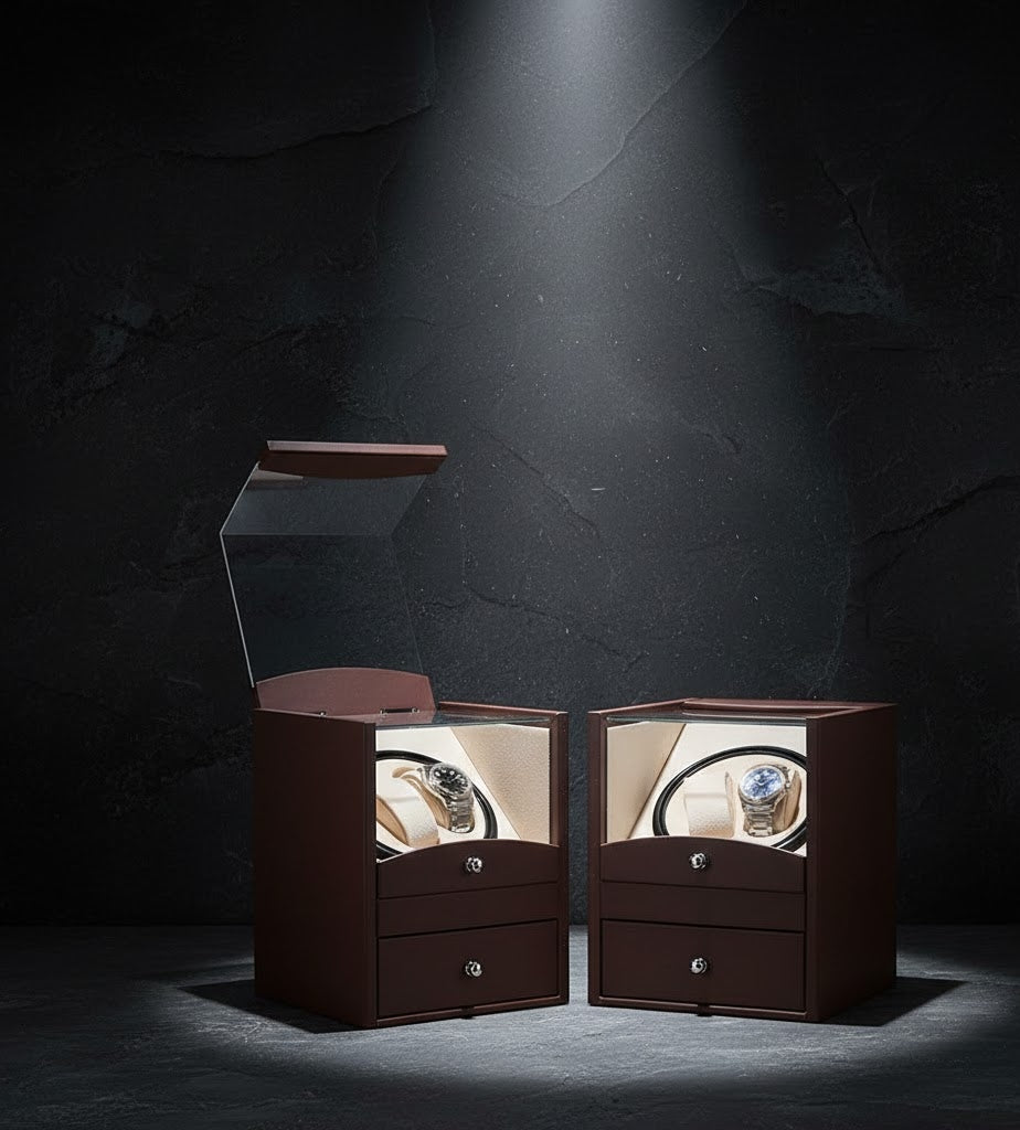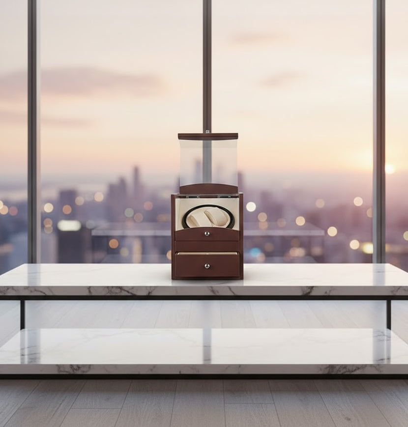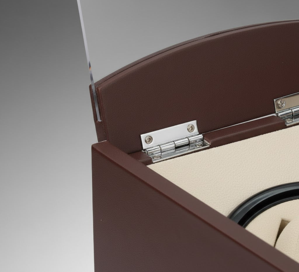 • Panoramic Arched Gallery: Designed with a signature arched viewing window to provide a clear, dust-proof view of your timepieces as they undergo their precision rotation cycles.
