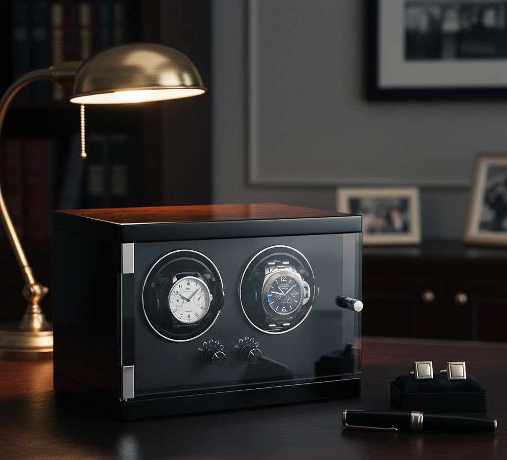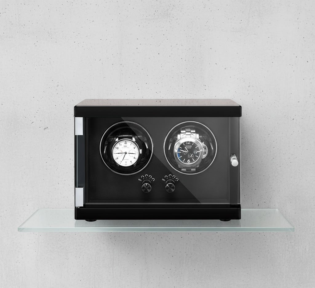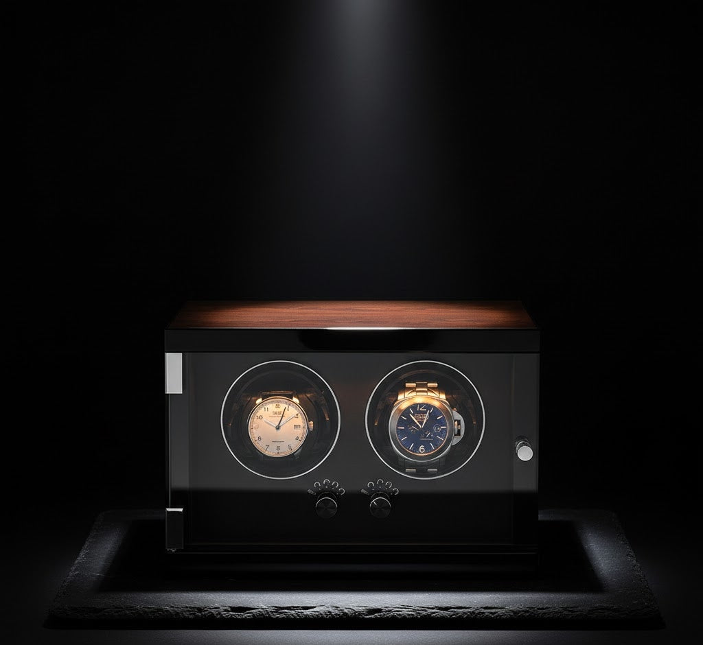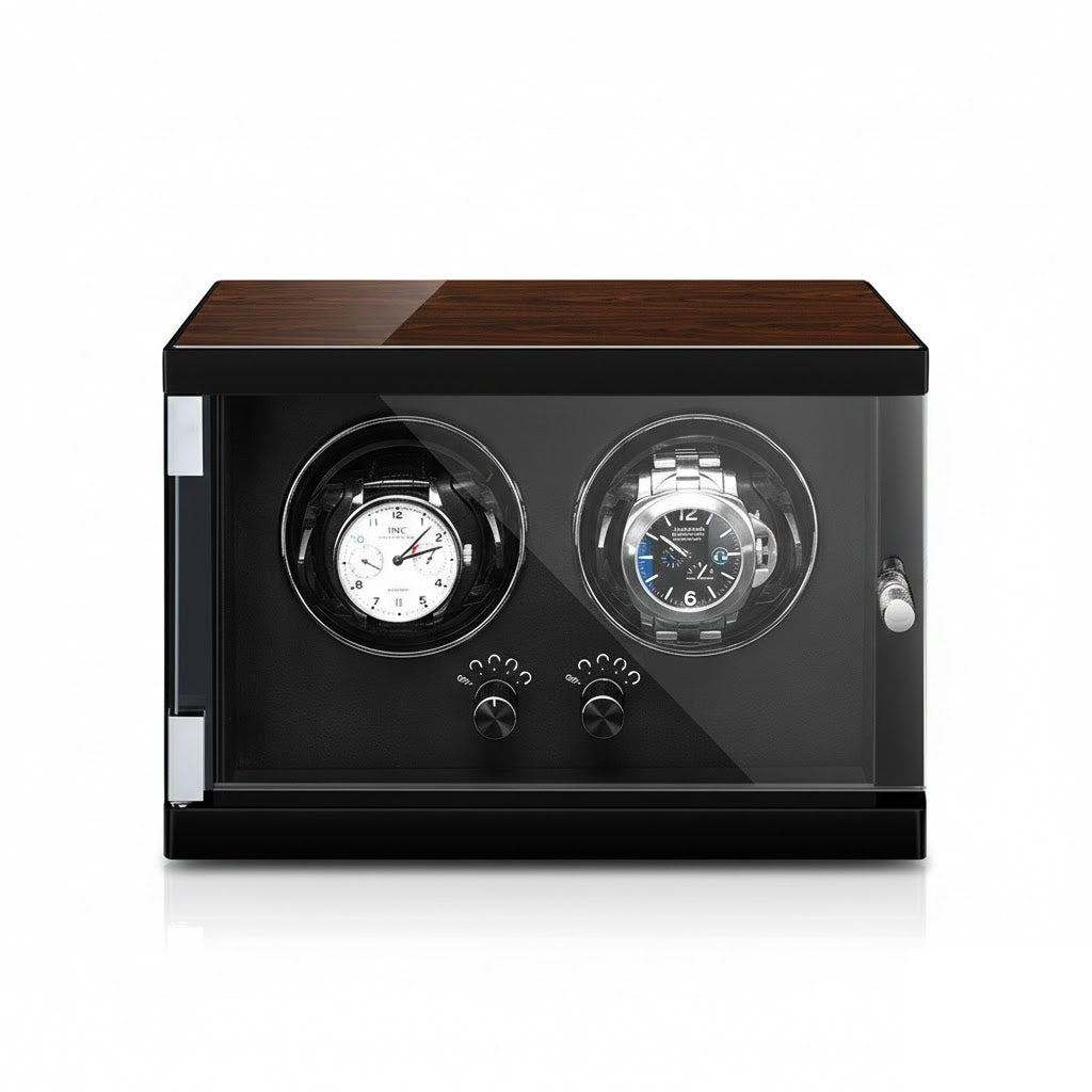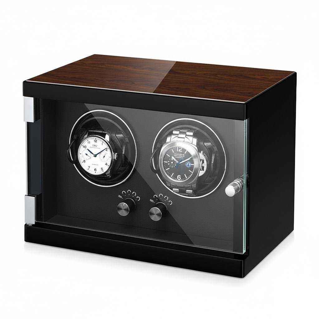 Aurelix Modello Duo | Double Automatic Watch Winder | Obsidian Black & Midnight Velvet | Precision Dual-Control Display