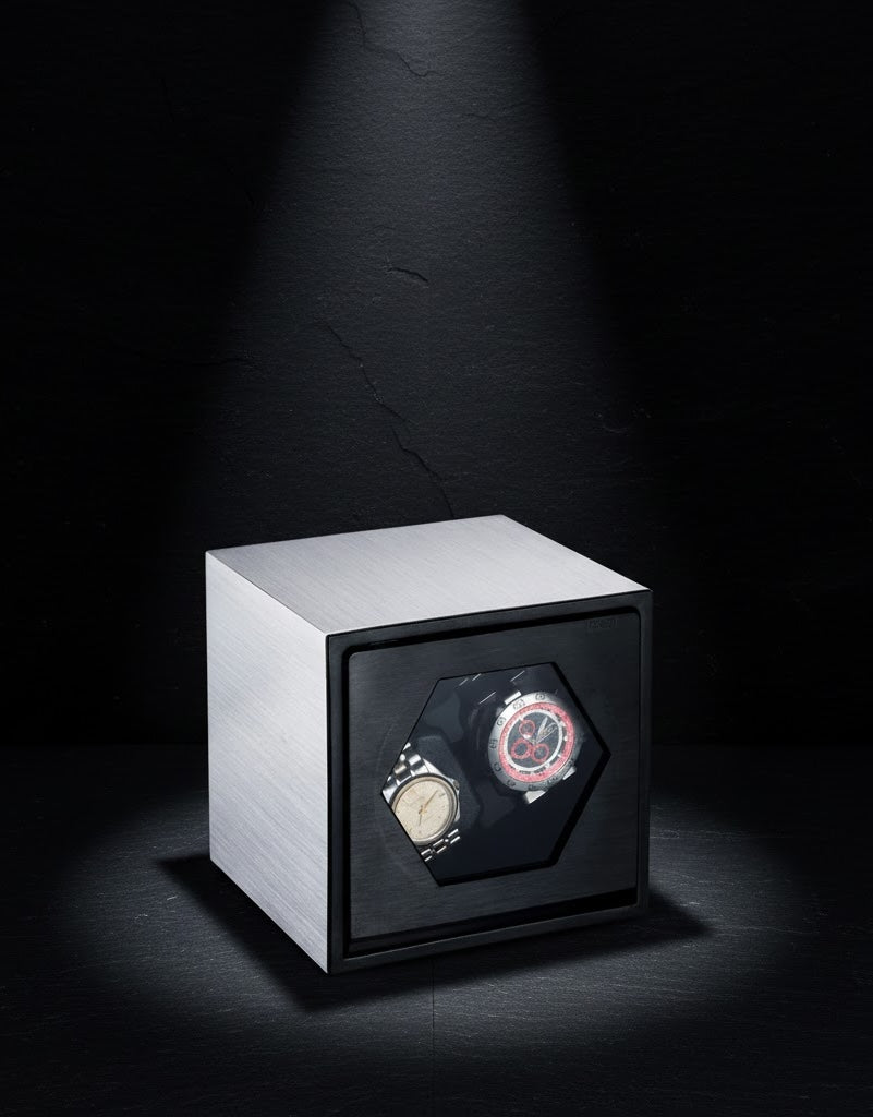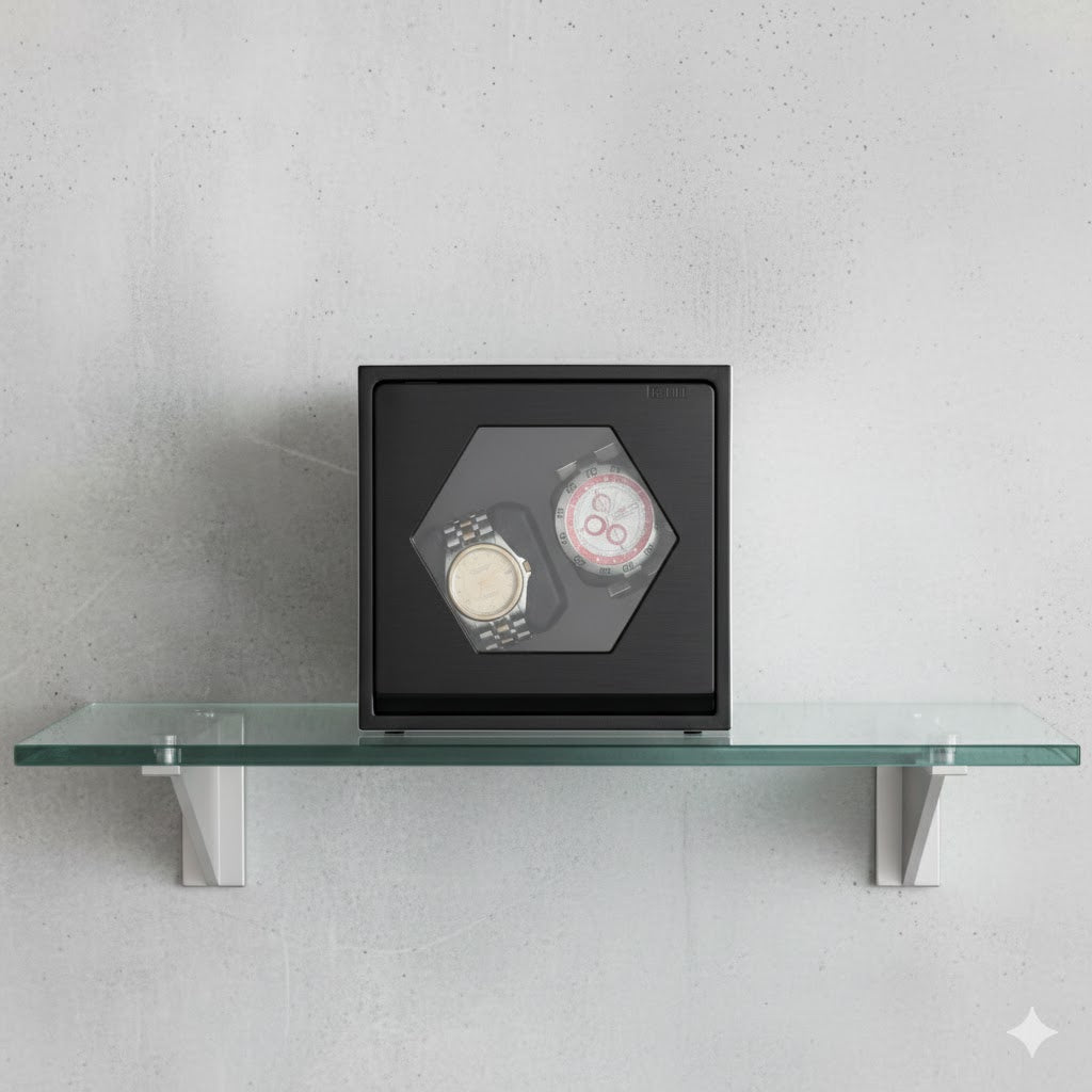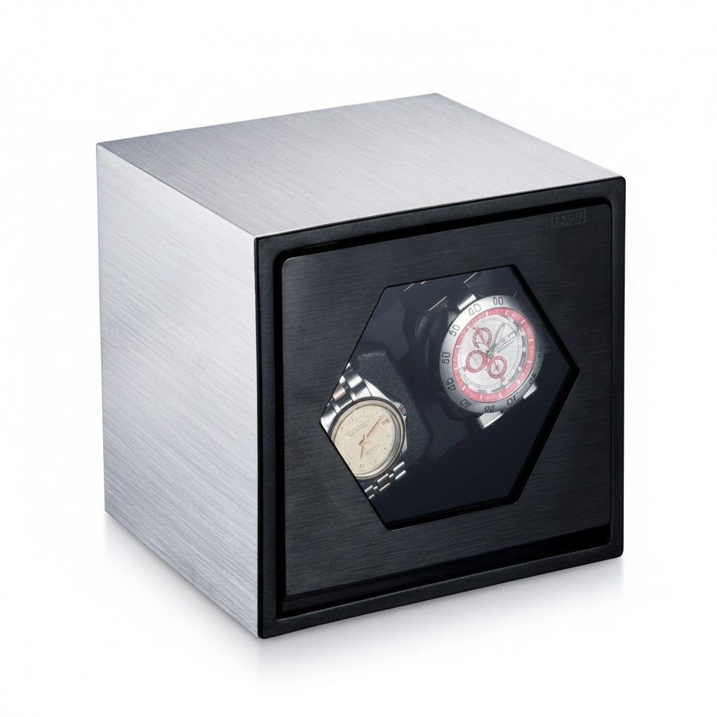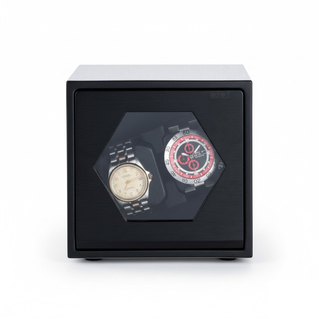 Aurelix Modulo Duo | High-Density Watch Winder | Brushed Aluminum & Hexagon Prism | Multi-Watch Rotor