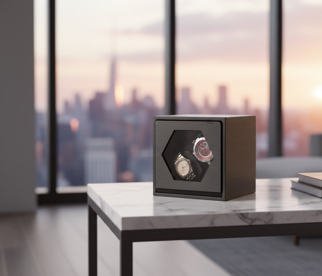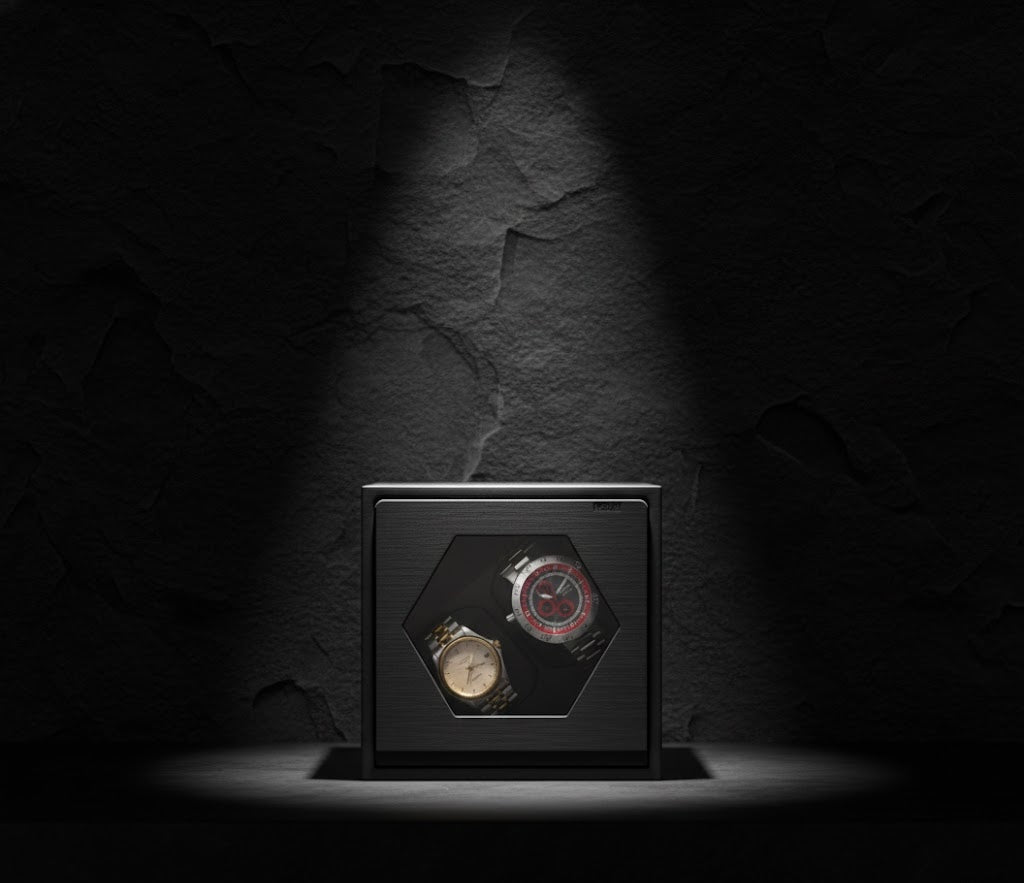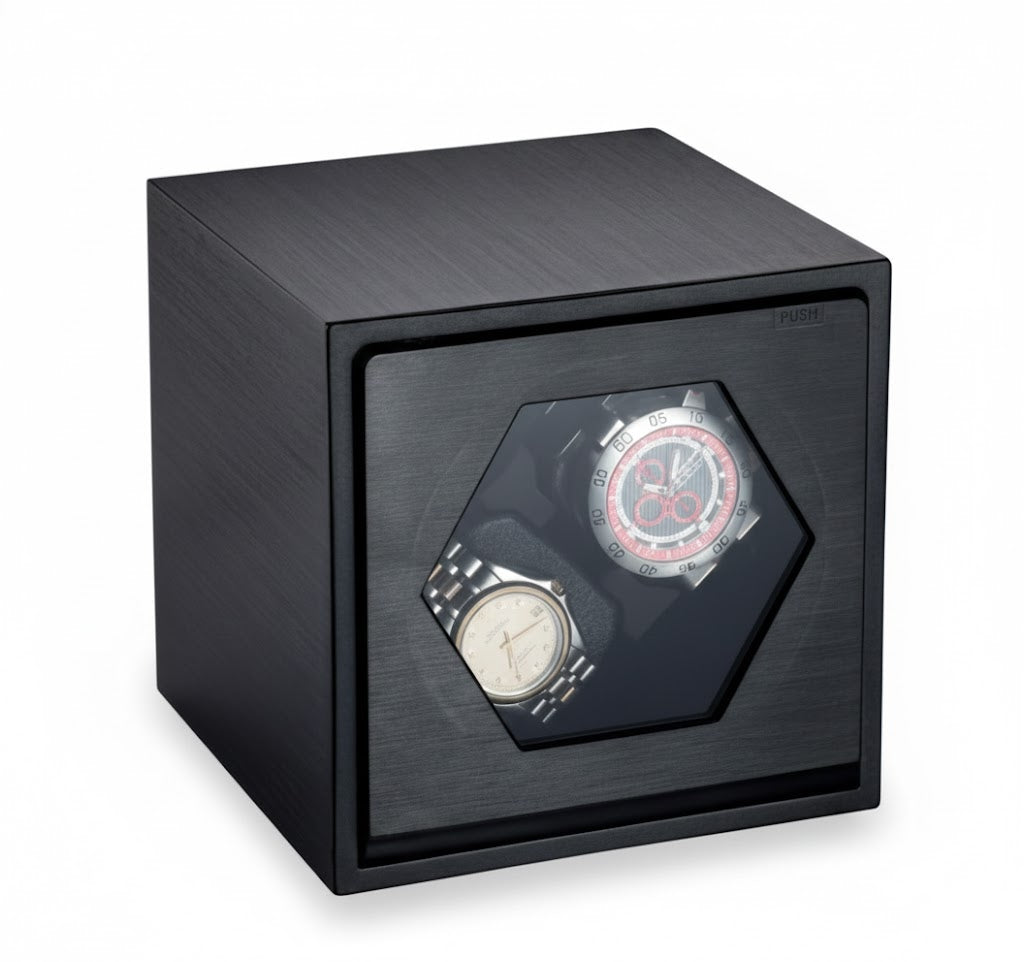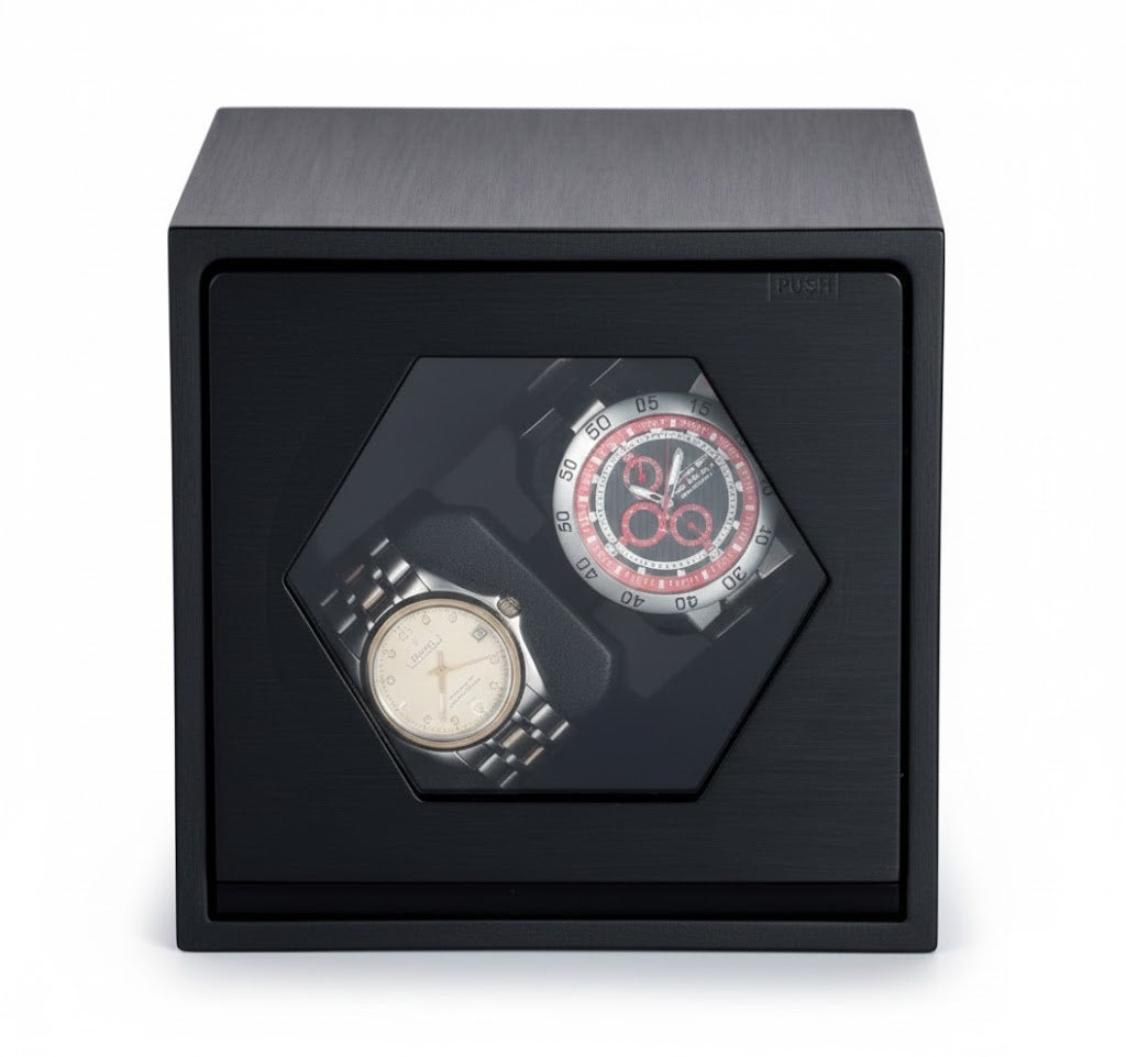 Aurelix Modulo Duo | High-Density Watch Winder | Obsidian Piano Lacquer & Hexagon Prism | Multi-Watch Rotor