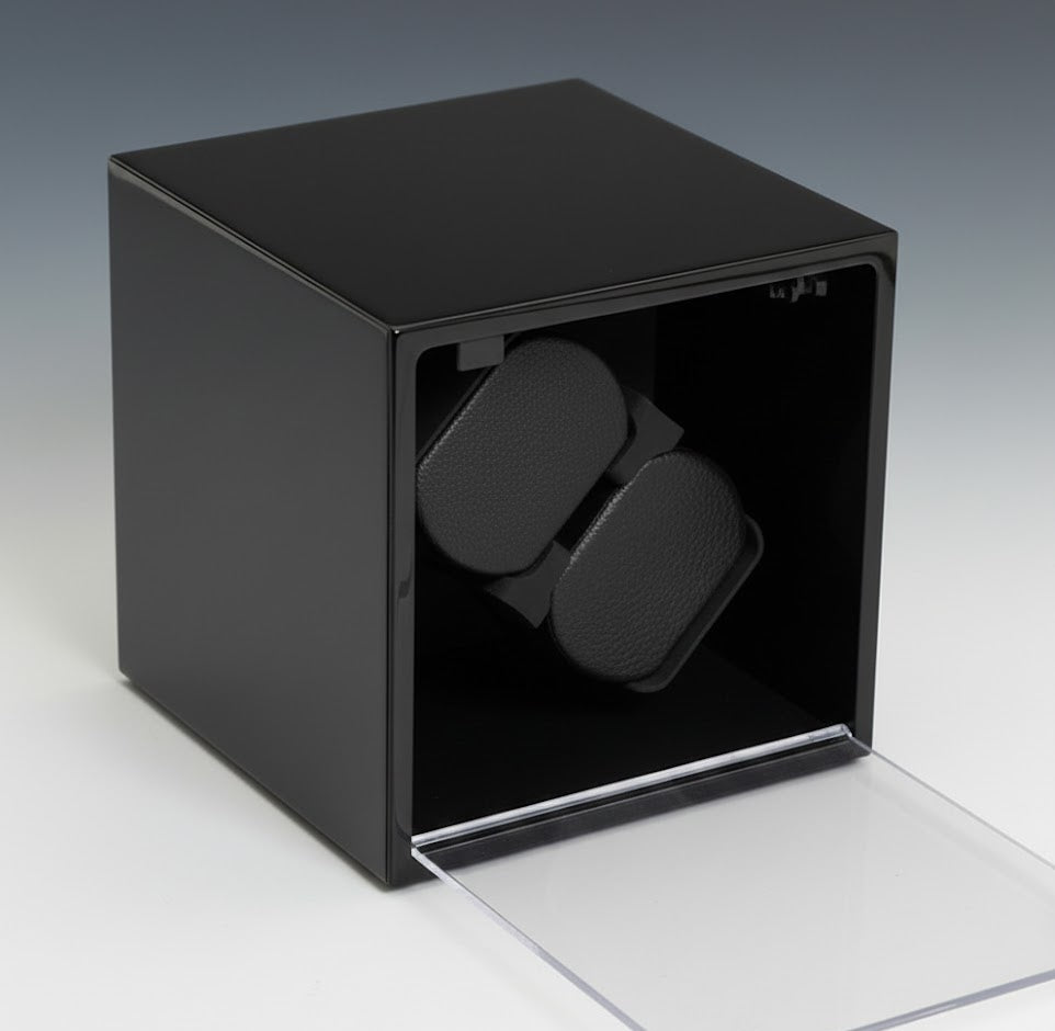 Aurelix Modulo Duo | High-Density Watch Winder | Obsidian Piano Lacquer & Midnight Suede | Multi-Watch Rotor