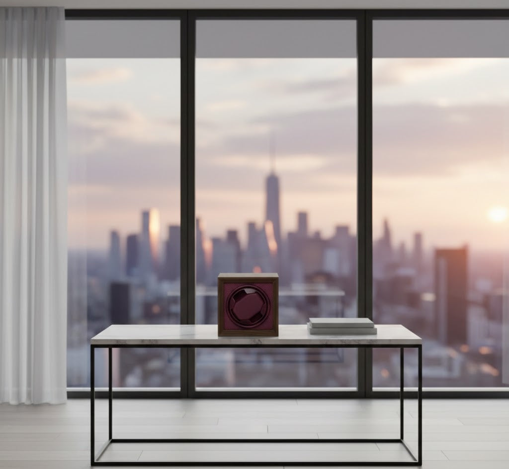 Redefining Space-Efficient Horological Excellence The Aurelix Modulo Solo is a masterpiece of geometric precision and organic warmth. Crafted with genuine Black Walnut veneers, this compact cube is designed for the modern collector who values stackable versatility without compromising on mechanical integrity. Whether displayed as a single unit or arranged in a custom modular array, the Modulo Solo provides a museum-quality sanctuary for your finest automatic timepieces.