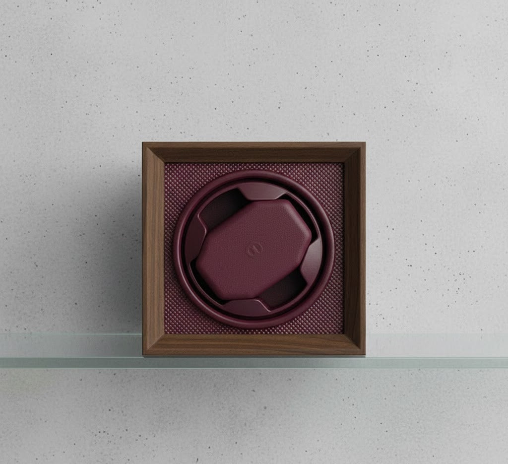 Aurelix Modulo Solo | Modular Automatic Watch Winder | Black Walnut & Bordeaux Carbon