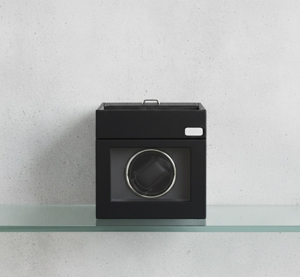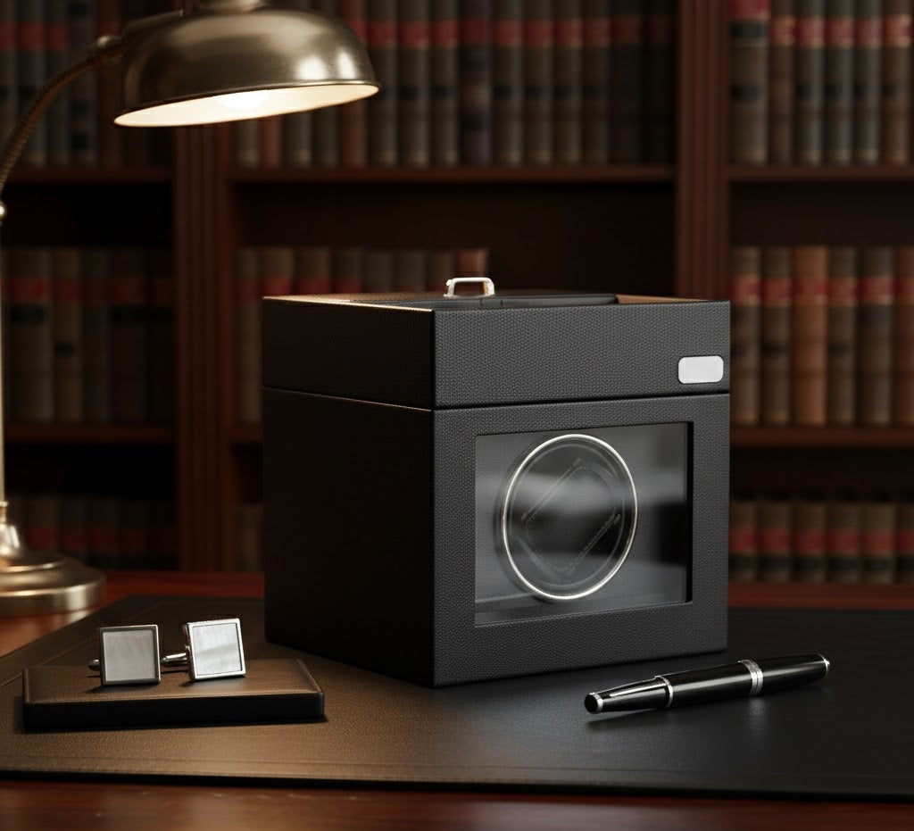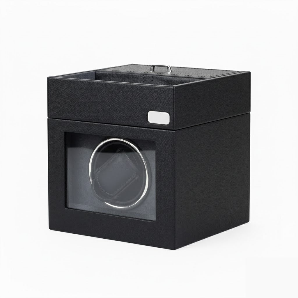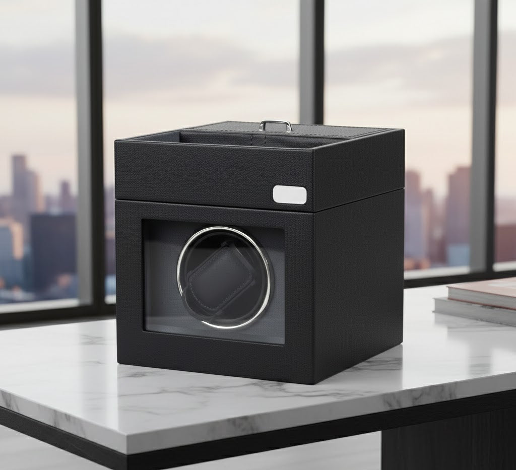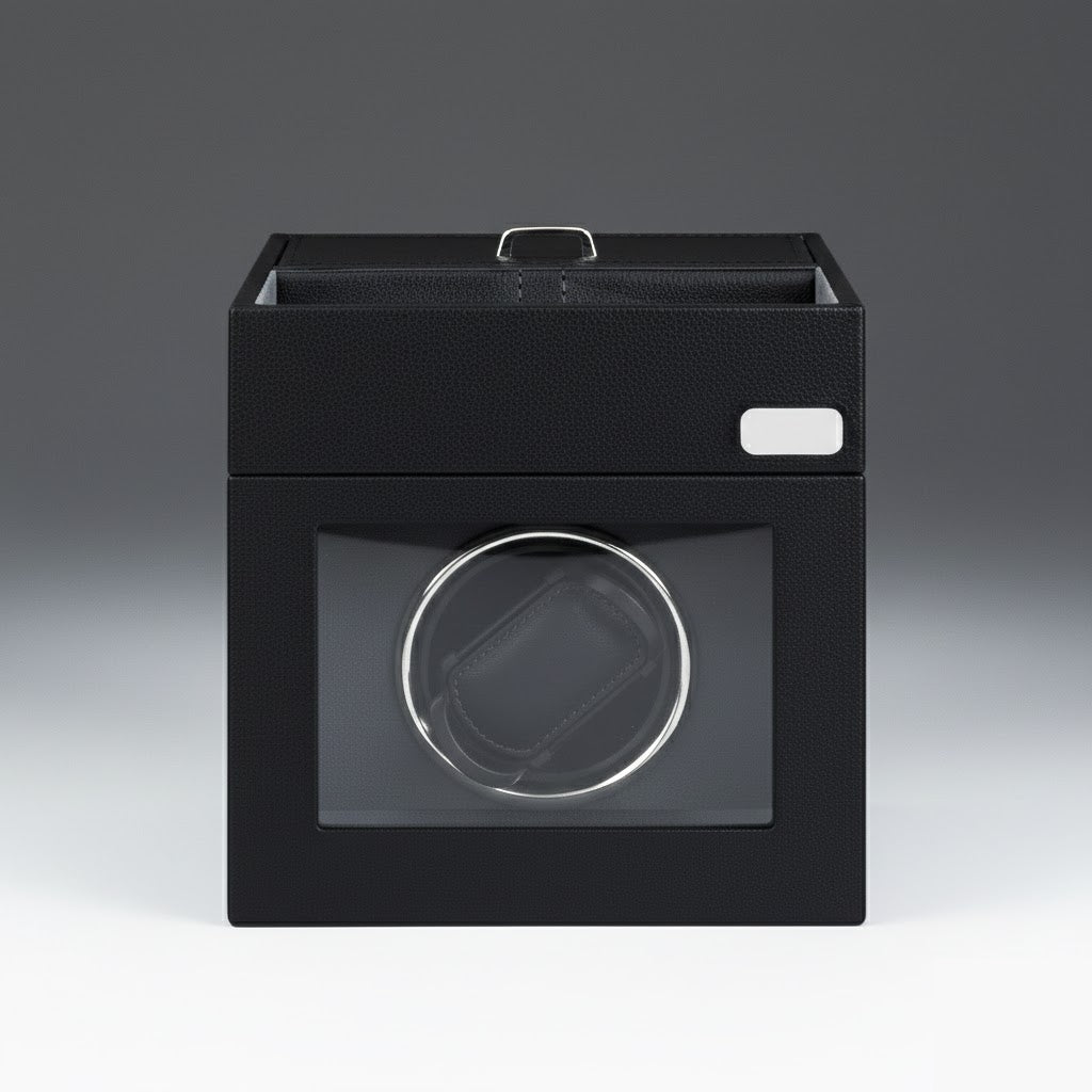• Dual-Tier Storage: Beyond active winding, the unit features a discrete top-access compartment for additional straps, cufflinks, or stationary timepieces.
